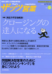 ■主催:日本経営合理化協会 http://www.jmca.co.jp/ ■営業部長・課長セミナーにて講師を勤める ■テーマ:「異業種に学ぶ!顧客開拓とリレーションのとり方> |
